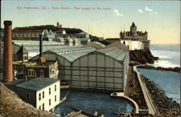 Front: San Francisco, Cal, Sutro Baths The largest in the world H⠀⠀⠀||||| PH R Back: 6- QUALITY SERIES No. 605 Pacific Novelty Company, Publishers, San Francisco, Cal. Made in Germany 1 c 2 c