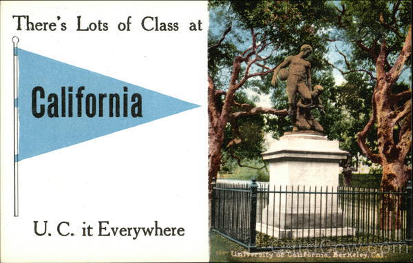 Front: There's Lots of Class at California U. C. it Everywhere 150 University of California, Berkeley, Cal Back: PUB BY SOUVENIR PUBLISHING CO. SAN FRANCISCO 6- >1¢ FOREIGN 2¢ THIS SPACE FOR ADDRESS ONLY