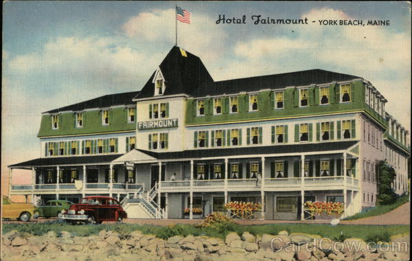Front: Hotel Fainmount - YORK BEACH, MAINE FRIRMOUNT Back: HOTEL FAIRMOUNT, the brightest spot at York Beach, Maine. The Cruiser Room, Cocktail Lounge Cocktails, Dinners, Dancing. K 1199 A 'COLOUR PICTURE PUBLICATION BOSTON 15, MASS., U. S. A.