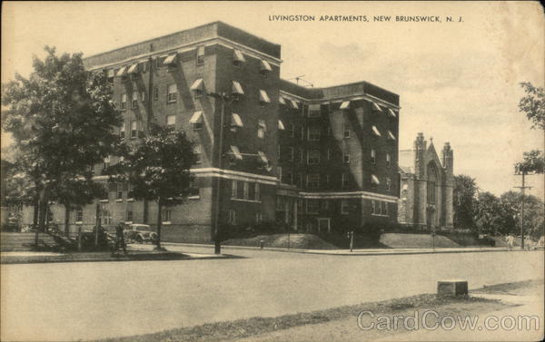 Front: LIVINGSTON APARTMENTS, NEW BRUNSWICK, N. J. Back: -IW ECKOUW VO A MAYROSE 0.5-IWE 1-Zawz la MESSAGE HERE
