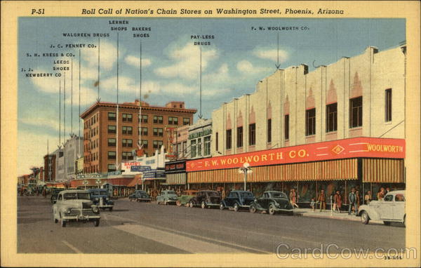 Roll Call of Nation's Chain Stores on Washington Street, Phoenix, Arizona