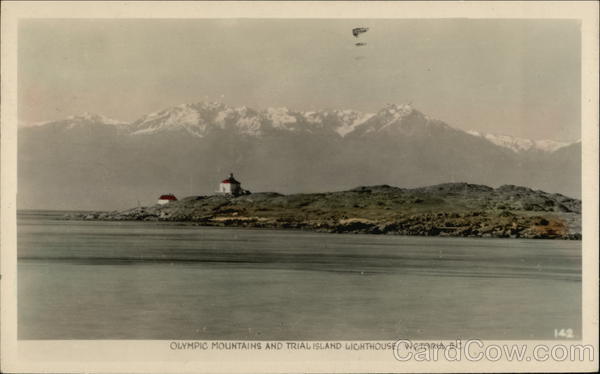 OLYMPIC MOUNTAINS AND TRIAL ISLAND LIGHTHOUSE, VICTORIA, B.C.