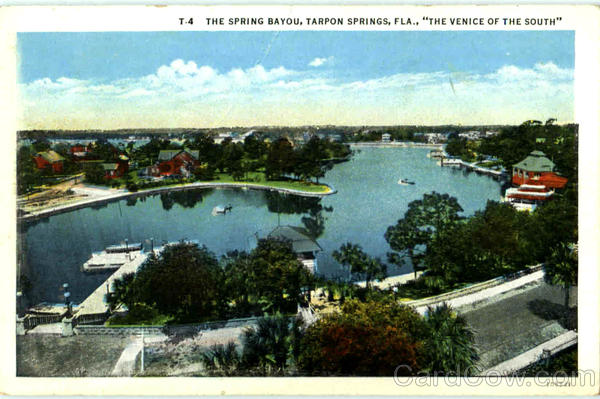Front: T.4 THE SPRING BAYOU, TARPON SPRINGS, FLA., "THE VENICE OF THE SOUTH" 108721 Back: AMERICAN ART COLORED FLORIDA hrine Pro