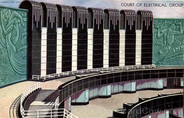 Front: PMANN FARY PHoto COURT OF ELECTRICAL GROUP ENER Back: A CENTURY OF PROGRESS CHICAGO'S 1933 INTERNATIONAL EXPOSITION -AMERICAN COLORTYPE COMPANY CHIDASOL NEW YORK 50 NO. 108
