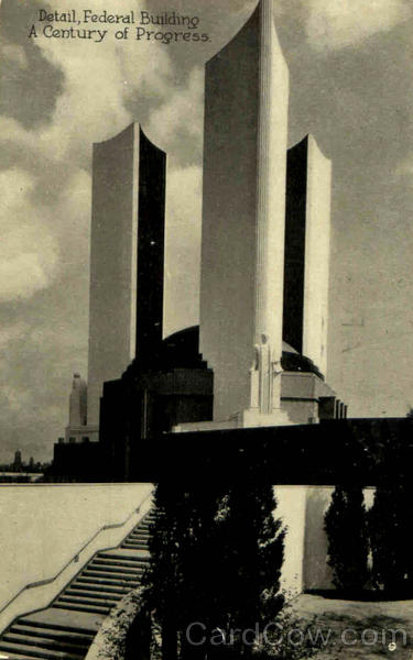 Front: Detail, Federal Building A Century of Progress. Back: 500 MED BY WESTERN PHOTOGRAVURE CO CHICAGO