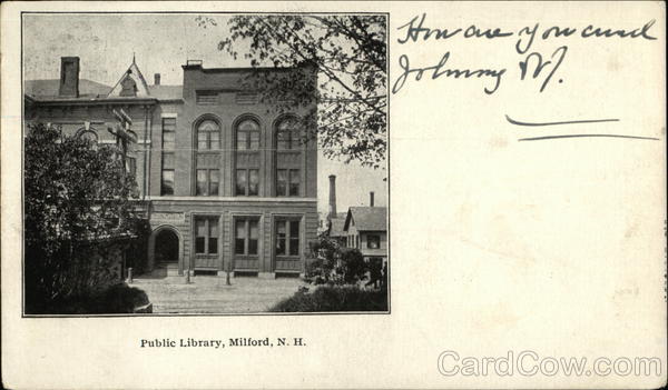 Front: UBRARY Public Library, Milford, N. H. How are you cund Johning M. my Back: 18 goo Miss FORD AUG29 10 AM 1905 N.H. iss Violet-Smiths. 345 Middle fit. New Bedfnd Mass. STATES OF Muk ANIELELICA U 1:06 FRANKLIN 1790 ONE CENT