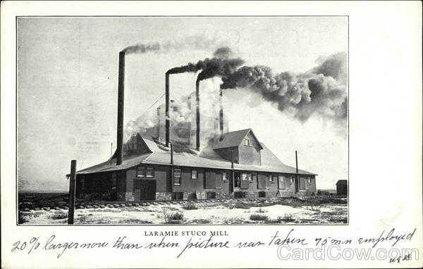 Front: че маг nas taken LARAMIE STUCO MILL 20% larger now than when picture 75mm employed UGB Back: wyon POST-CARD. 15° Two CENTS