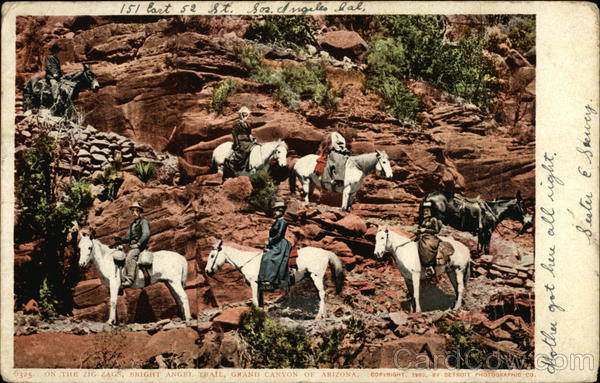 6325. ON THE ZIG ZAGS, BRIGHT ANGEL TRAIL, GRAND CANYON OF ARIZONA. COPYRIGHT, 1902, BY DETROIT PHOTOGRAPHIC CO.
