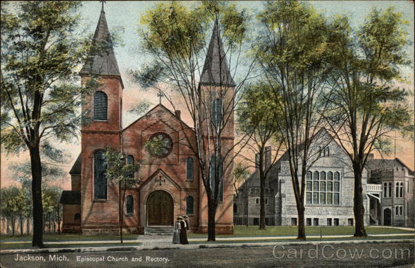 Front: Jackson, Mich, Episcopal Church and Rectory. Back: THE HUGH C. LEIGHTON CO., MANUFACTURERS, PORTLAND, ME., U.S.A.27377 MESSAGE MAY BE WRITTEN ON THIS SIDE. and Island Possessions Cuba, Canada and For Foreign.