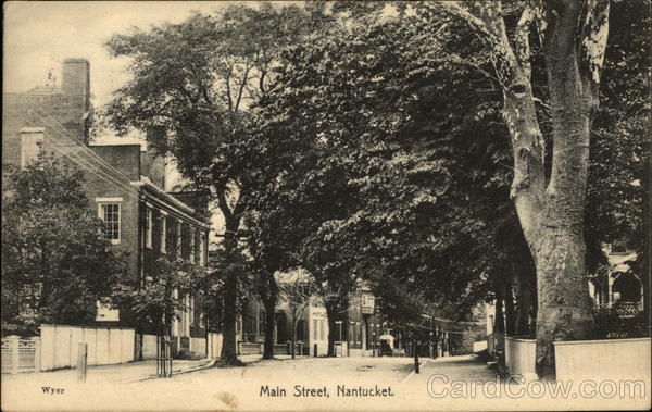 Front: Wyer Main Street, Nantucket. A72603 Back: Frinted in Germany for Henry S. Wyer, Nantucket, Mass. U. S. A. No. 63 INTUCKEY SEPI 6 night Paul. 1 M 1230PM will be home Miss Louise Trous Sunday 48 Peckham st Fall Tunes Mass نہیں