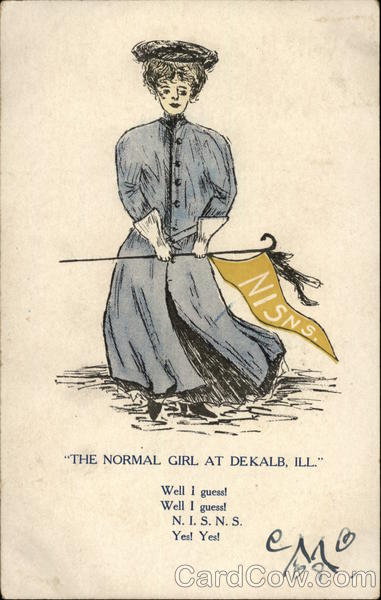 Front: NISHS "THE NORMAL GIRL AT DEKALB, ILL." Well I guess! Well I guess! N. I. S. N. S. Yes! Yes! EMB Back: ¥400 DEKALE POST CAR 19 08 NERIEN 1907 Ill UNITED STA 1706 FRANKLIN 1290 Mrs. C. C. Osbome. 517h. Horsman St. Rockford,