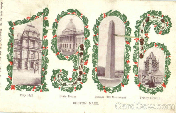 City Hall, State House, Bunker Hill Monument Trinity Church.