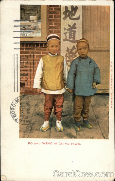 Front: PO AND WING IN CHINA-TOWN. XTOROLL OCTA SUR C CLI LU 802 M. RIEDER PUBL. LOS ANGELES CAL. NO. 502. TWIS 地道 Back: ANGELES Post Care 650 PM 1902 Miss Mary Forbes. 12 Sfight. POS ONE CEN Westborough Mais