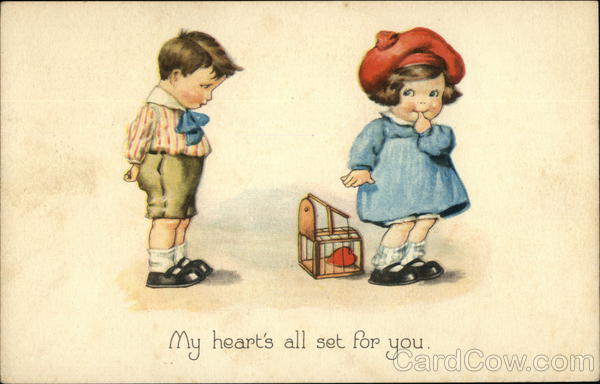 Front: My heart's all set for you. Back: PUBLISHED BY THE GIBSON ART COMPANY-CINCINNATI, U.S.A. IBSON POST CARD STAMP LINES Stuart B.