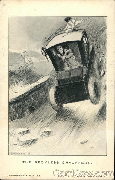 Front: BAYARD JONES- THE RECKLESS CHAUFFEUR. 14094-DETROIT PUB. CO. COPYRIGHT, 1906, BY LIFE PUB. CO. Back: AND CANADA, FOREIGN, Two CENTS.
