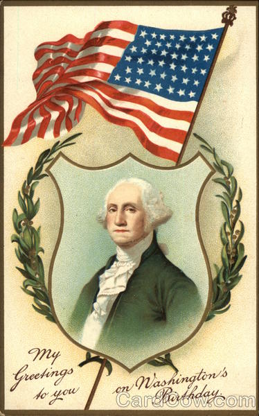 Front: ту Greetings to you 16 ver on Washington's Birthday PAINTING ON HTED BY 6,00. 1908 Back: No 51646. International Art Publ.Co. LAIR COLOR TRADE MARK NEW-YORK BERLIN HERE.