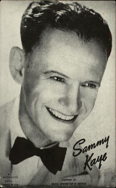 Front: MUTOSCOPE MADE IN USA Sammy Kaye COURTESY OF MUSIC CORPORATION BE AMERICA Back: THIS. SIDE A MUTOSCOPE CARD. HERE