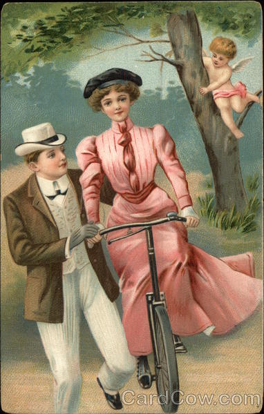 Couple on Bicycle, Cupid in Tree