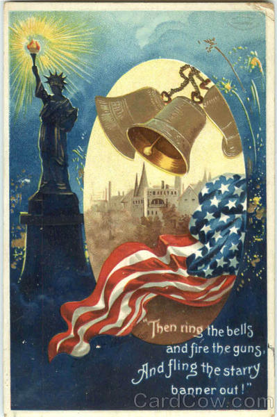 "Then ring the bells and fire the guns, and fling the starry banner out!"