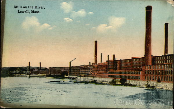 Front: Mills on the River, Lowell, Mass. **** 100 100 Back: Mfg. by Tichnor Bros., Inc., Boston, Mass. هي في DOST THIS SPACE FOR ADDRESS ONLY