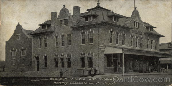 Front: IT 필리 티비 1 113 HTT HERSHEY Y.M.C.A. AND GYMNASIUM Hershey Chocolate Co., Hershey, Pa. 트 Back: WRITE MESSAGE BELOW TWO CENTS