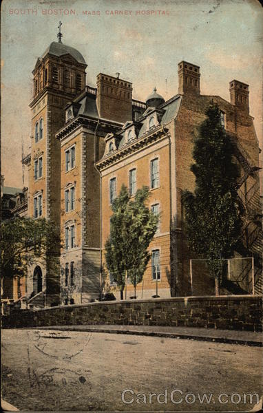 Front: SOUTH BOSTON, MASS. CARNEY HOSPITAL. 10 Back: NO 1003 Writing Sce. مسند Lamis JUN 6 6 308 08 MASS 19 themes PHAMS CORNER STATION NATA SERIEN 192 UNITED STATES OF 1706 FRANKLIN Kathering Me Laught Hotlink Mass.