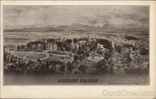 Front: AMHERST COLLEGE FA COPYRIGHT 1908, W.T. LITTIG & CO, NEW YORK. C1 130 Back: Reproduction of a photogravure in sepia, 15 x 28 inches, published by W. T. Littig & Co., New York. 3.50 892