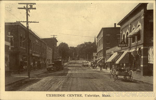 Front: 30 WALD UXBRIDGE CENTRE, Uxbridge, Mass. TALOR mies GUNN'S WW/SHO Back: This space may be used for communication. How goesit? will see you som. RIDC 1915 17 PM 13 MASSY Miss Helen B. Weat Seetonk жаго