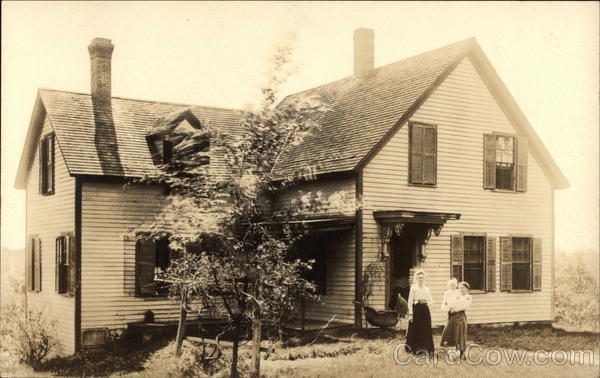 Woman, Girl, and Baby in Front of House with Baby Carriage in 1918