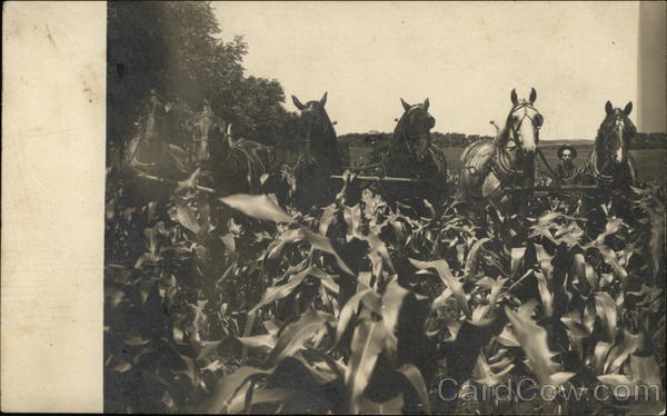 Horses and Farmer Harvesting the Corn