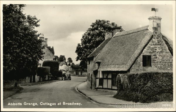 Front: Abbotts Grange, Cottages at Broadway. wwwwww 14984. Back: Copyright. J. Salmon Ltd. Sevenoaks Real Photo. Printed in England SALMON TRADE WITH GREETINGS AND BEST WISHES MARK
