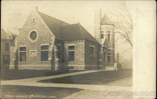 Front: STRATFORD PUBLIC LIBRARY.STRATFORD.CONN. Back: Libraries 45- Conn) DISCARDEDPUBLIC ATTLEBORGARBLIC LI ATFROM PICTURE COLL