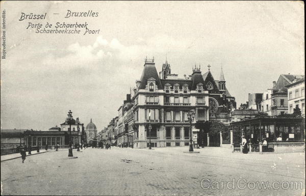 Front: Reproduction interdite. BrĂ¼ssel Bruxelles Porte de Schaerbeek Schaerbeeksche Poort Back: D. T. C., Anvers Brs. 73 POSTKAART