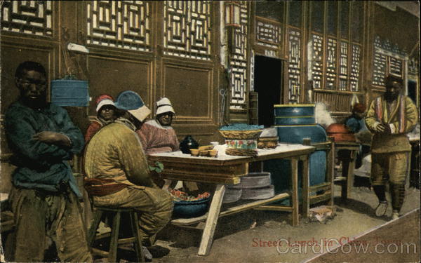 Front: Ma 出面 Street Lunch in China Town. Back: POST CARD. - POSTKARTE. - CARTE POSTALE. CHROM. EDIT. KINGSHILL, SHANGHAI. 279