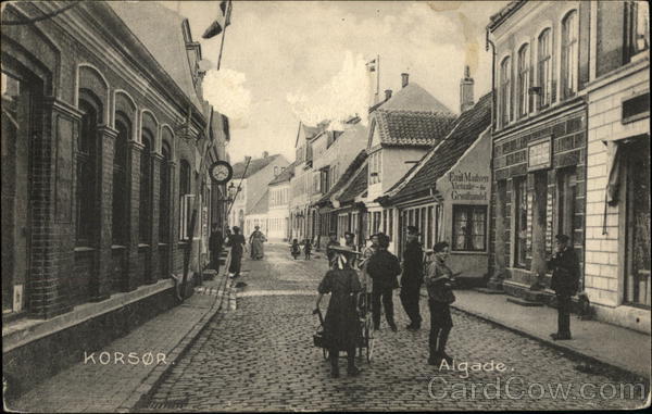Front: FR6 KORSØR Gantik, GICKING TE HEART Emil Madsen Victualie- & Grønthandel. Algade Back: N. Zachariassens Boghal, Korser Eneret 13397 Ifølge Postvæsnets Forordning maa Korrespondancen ikke overskride denne Linie. BREVKORT Kun for Adressen: B