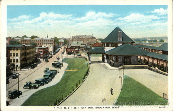 Front: HASTESHM elab ad N.Y. N. H. & H. R. R. STATION, BROCKTON, MASS. 107097 Back: C. T. AMERICAN ART COLORED CHI 09 250