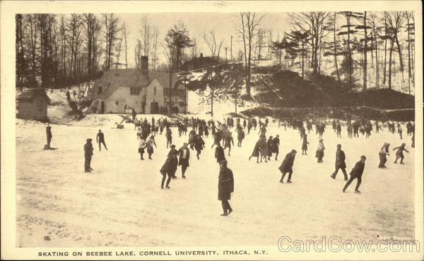 Front: Minec SKATING ON BEEBEE LAKE, CORNELL UNIVERSITY, ITHACA, N.Y. RID ROY PHOTO Back: MESSAGE ONLY ANTWA PHOTO CRAF COMPANY Watertown, N. Y. HERE