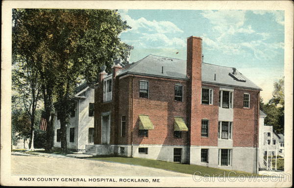 Front: KNOX COUNTY GENERAL HOSPITAL, ROCKLAND, ME. Back: Pub. by Huston-Tuttle Book Co., Inc., Rockland, Me, Hills HT BOOK CO INC. TI.I THIS SPACE FOR ADDRESS ONLY.