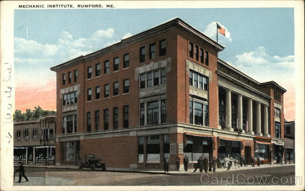 Front: here! am MECHANIC INSTITUTE, RUMFORD, ME. Js115 TE GEFEE GFC GGEGE PAL Back: 100 110498 THIS SPACE FOR ADDRESS ONLY