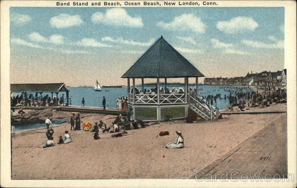 Front: Band Stand and Beach, Ocean Beach, New London, Conn. ML57 6471 Back: Pub. by J. Solomon, New London, Conn. 2 GENTS