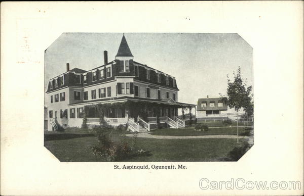 Front: MI ITI 11 St. Aspinquid, Ogunquit, Me. □⠀⠀ Back: COMMUNICATION REG. U.S. PAT OFT SWALLOW EST 1904 INC. 19H FRANK W ONA EXETER NH Two Cents