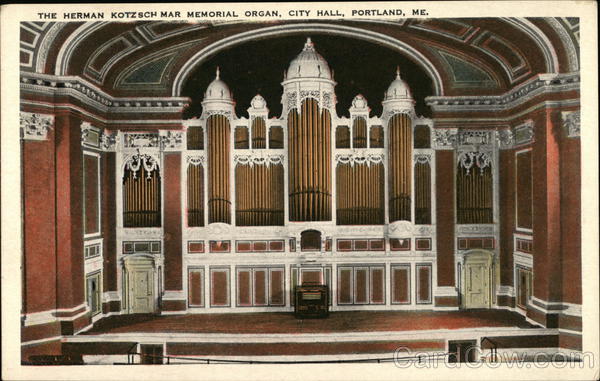 Front: THE HERMAN KOTZ SCH MAR MEMORIAL ORGAN, CITY HALL, PORTLAND, ME. 10 19 Back: PUB. BY CHISHOLM BROTHERS, ST. JOHN ST., PORTLAND ME. Fea E-DINOR MASS 105116 Miss Bessir Lusembe