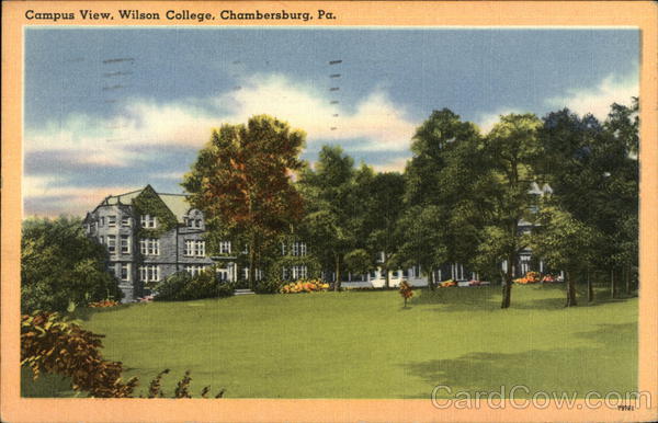 Wilson College was incorporated by Act of the Legislature, March 24, 1869, and was opened October 12, 1870, as a school for the higher education of women. A large portion of the funds made available for the founding of the college were contributed by Miss Sarah Wilson as a memorial to herself and her family. Miss Wilson is buried at the graveyard of Rocky Spring Presbyterian Church. Tichnor Bros. |