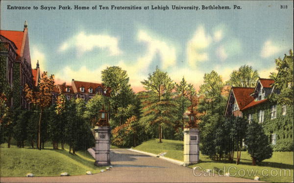 Front: Entrance to Sayre Park, Home of Ten Fraternities at Lehigh University, Bethlehem. Pa. B18 in Back: 1 ja THE MEBANE GREETING CARD CO., WILKES-BARRE, PA. 66165