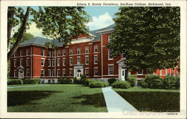 Front: Edwin S. Bundy Dormitory, Earlham College, Richmond, Ind. IE 1A2837-N Back: ADAM H. BARTEL CO., RICHMOND, IND.