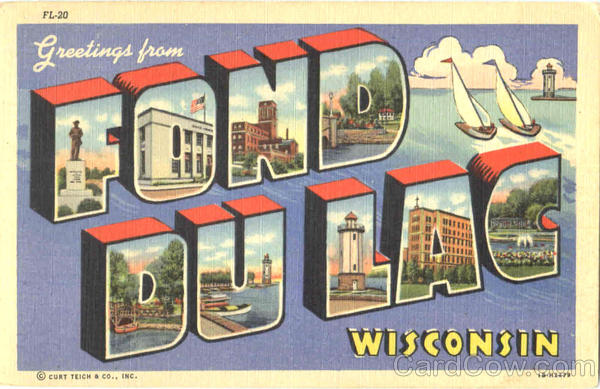 Front: FL-20 Greetings from WISCONSIN CURT TEICH a co., INC. 18-H2479 Back: FOND DU LAC NEWS CO. FOND DU LAC, WIS. знан