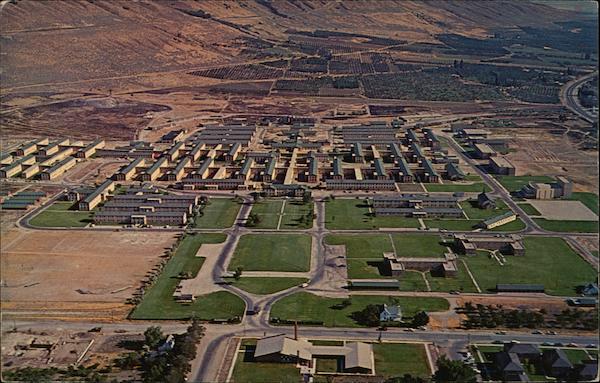 | Established in 1949. Brigham City. Utah. Some of the 140 buildings on the 300-acre campus which is attended by 2200 Navajo Indians between the ages of 12 and 18. A special 5-year program emphasizes the three R's, white men's customs, and vocational training. Academic progress and social adjustment are amazingly rapid. Visitors are always welcome. Color by C. E. Baldwin. |