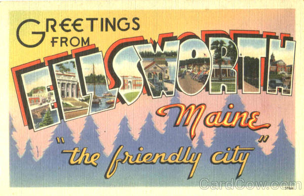 Front: REETINGS Maine the fpriandly city 77044 Back: MADE IN U. 5. A. POST CARE TICHNOR QUALITY VIEWS REG. U S. PAT OFF. MADE ONLY 6Y TICHNOR BROS. INC. BOSTON, MASS