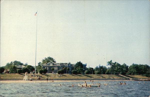 ISLAND HEIGHTS, N. J. Campers swimming and boating in Barnegat Bay, at the Presbyterian Camp, Island Heights, N. J. Parlin Photo Service, Toms River, N. J. 12529 Address