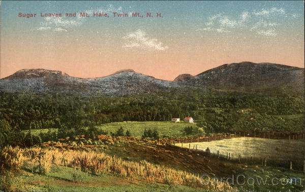 Front: Sugar Loaves and Mt. Hale, Twin Mt., N. H. 12.03 Back: Pub. by J. V. Hartman & Co., Boston, Mass. J.V.H. POST GARD Co. 2 GENTS